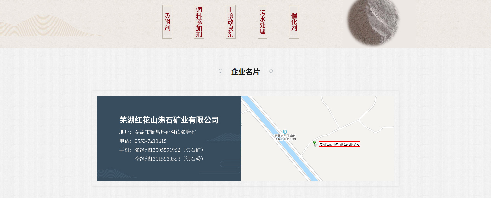 蕪湖紅花山沸石礦業(yè)有限公司距繁昌縣約18公里,有公路直達(dá)礦區(qū),距滬銅鐵路線(xiàn)的繁昌站、楓香墩站約20公里,礦區(qū)西側(cè)的赤沙河道直通荻港至長(zhǎng)江,水路交通地理位置好。沸石是硅氧、鋁氧四面體構(gòu)成的架狀硅酸鹽,有較大的比表面積和孔體體積。我礦沸石經(jīng)321、803地質(zhì)隊(duì)勘探儲(chǔ)量約一億噸以上,主要為絲光沸石(Ca、Na、K2)【ALSi2O2】27H2O,此外還含有石英、蒙脫石等,經(jīng)合肥工業(yè)大學(xué)、蕪湖市科委、華東冶金地質(zhì)礦產(chǎn)研究所、南京地礦研究院等單位測(cè)試測(cè)定沸石含為55%—68%。